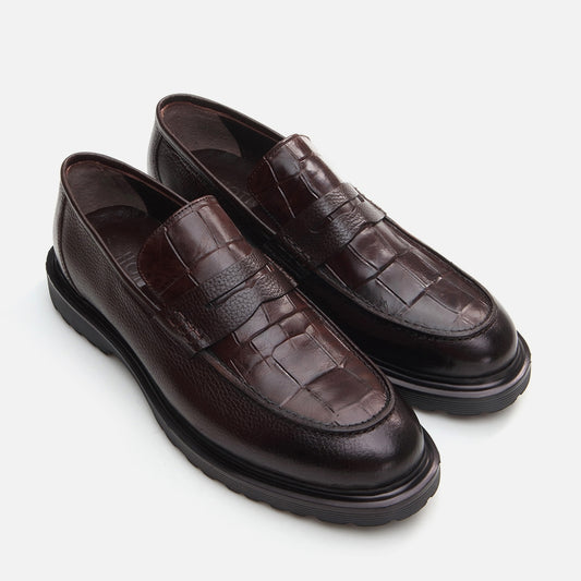 Men's Brown Leather Loafers - Genuine Leather