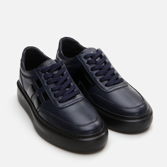 Genuine Leather Navy Blue Men's Casual Shoes