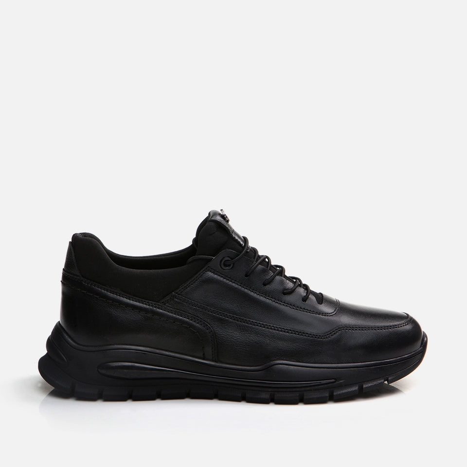 Genuine Leather Black Men's Sports Shoe