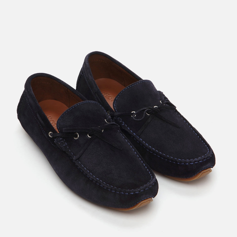 The sleek silhouette of these loafers is both timeless and contemporary. The slip-on design makes them incredibly easy to wear, while the classic moc-toe detail adds a touch of elegance. The versatile navy blue shade complements any outfit, from tailored trousers to your favorite pair of jeans, making them the perfect choice for any occasion.